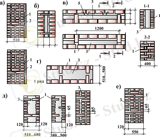 Сурет 1. Қабырға қалауларын байлау түрлері.