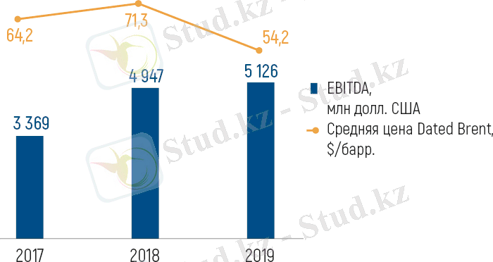 Шикізат нарықтарының жоғары құбылмалылығына және 2019 жылы мұнай бағасының төмендеуіне қарамастан, қаржылық көрсеткіштер тұрақты болып қалды. Dated Brent мұнайының орташа бағасы 2018 жылмен салыстырғанда 10% - ға төмендеді, ал EBITDA сияқты негізгі қаржылық көрсеткіштер, еркін ақша ағыны және таза пайда тиісінше 3, 6%, 27, 5% және 50, 5% - ға оң өсім көрсетті