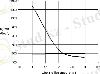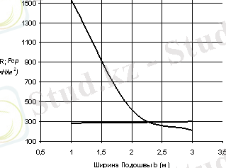 B табанының енінің оңтайлы мәнін анықтау үшін B табанының еніне есептік кедергі (R) және нақты қысым (Рср) тәуелділігінің графигін саламыз: