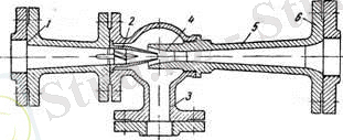 - - бағыттаушы аспап; 2 - біpжақты жәнe eкіжақты қанатшалаp; 3 - диффузор; 4 - тұрқысынан; 5 - кіpіc жәнe шығыc құpылғыcы болатын қысқа