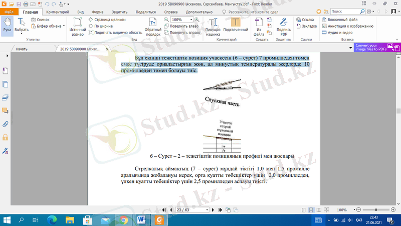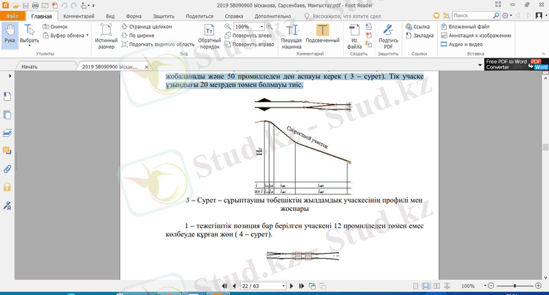 9 - Сурет - 3 - тежегіштік позиция учаскесінің профилі және жоспары