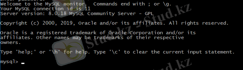 ДҚБЖ - мен жұмыс істеу үшін командалық жол терезесін немесе графикалық қабығын ашыңыз. MySQL іске қосқаннан кейін біздің терминал терезесі осылай көрінеді: