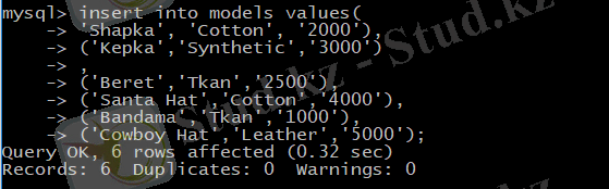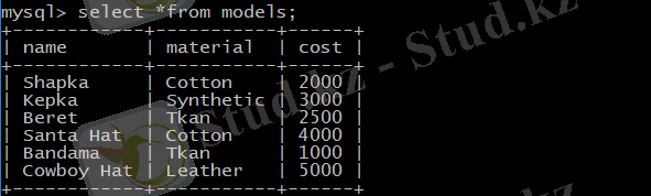 select *from model; командасы арқылы сұраныс жасаймыз: