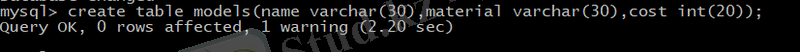 mysql> create table clients (name varchar(30) , model varchar(30) , buy_date date, total_cost int(10) ) ;