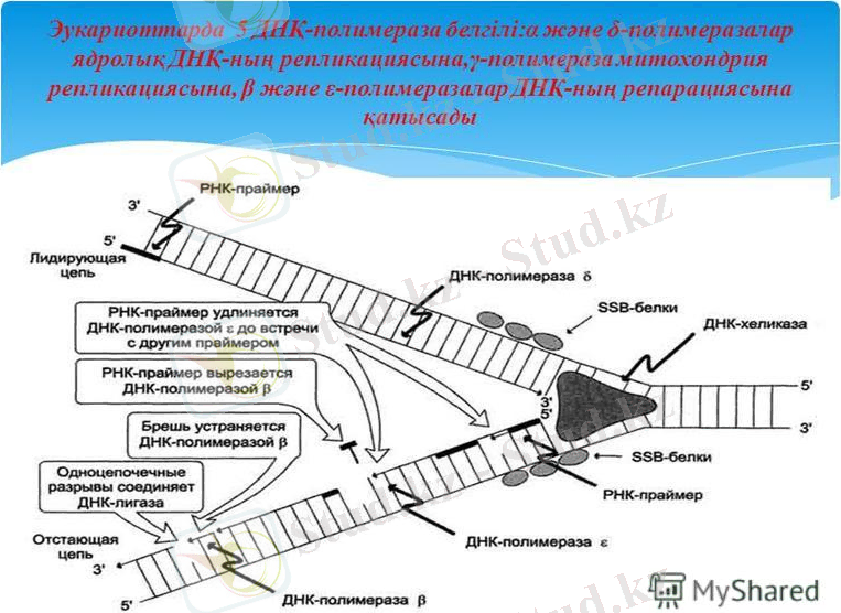 ДНҚ полимераза - жойылғанның орнына ДНҚ тізбегінің сәйкес бөлігін синтездейтін фермент;