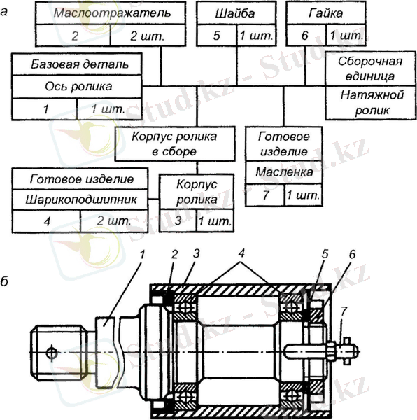 Сурет 1 - Құрастыру схемасы (а), құрастыру бірлігі (б)