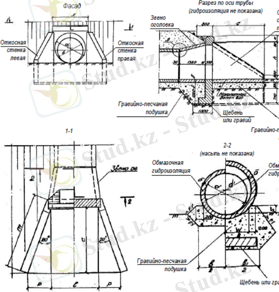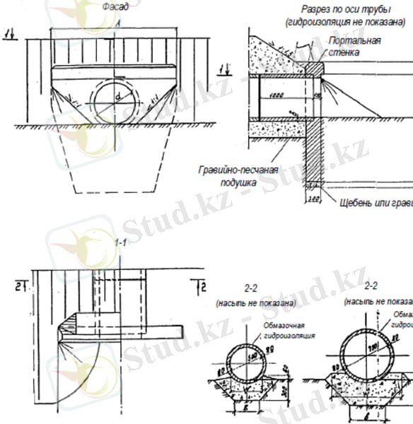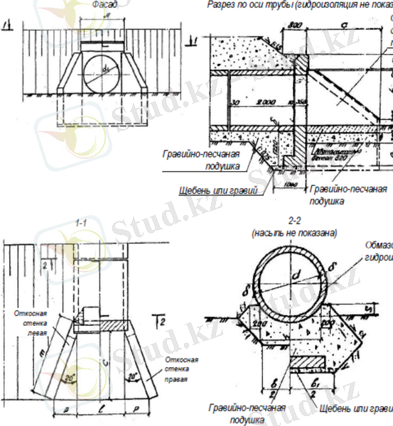 Сурет. 1 Темір-бетон құбырлары бастарының негізгі түрлері: а-порталды; б-қонышты; в-сүйірлі; г-жағалы; д-ақпалы