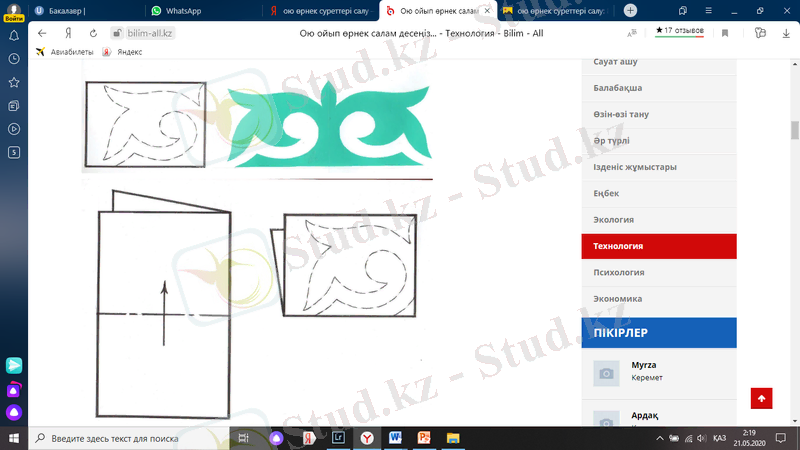 Әрине, оқушылардың төл мәдениетпен танысып, ата дәстүрге қызығушылық танытатындары сөзсіз жақсы. Алайды, мен қарап көрген 7-8 сынып арасындағы қыз балдарға арналған «Еңбекке баулу» оқулықтарында ою- өрнектер туралы жеткілікті мағлұмат берілмеген.