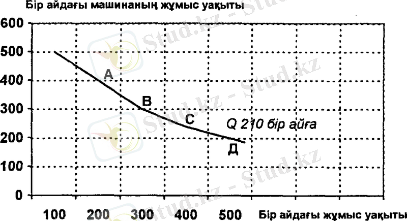 Графикте жұмыс сағаты мен машина жұмыс сағатының әрбір комбинациясы өндіріс пен шығынның белгілі көлеміне сәйкес келеді.