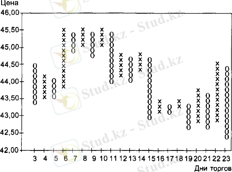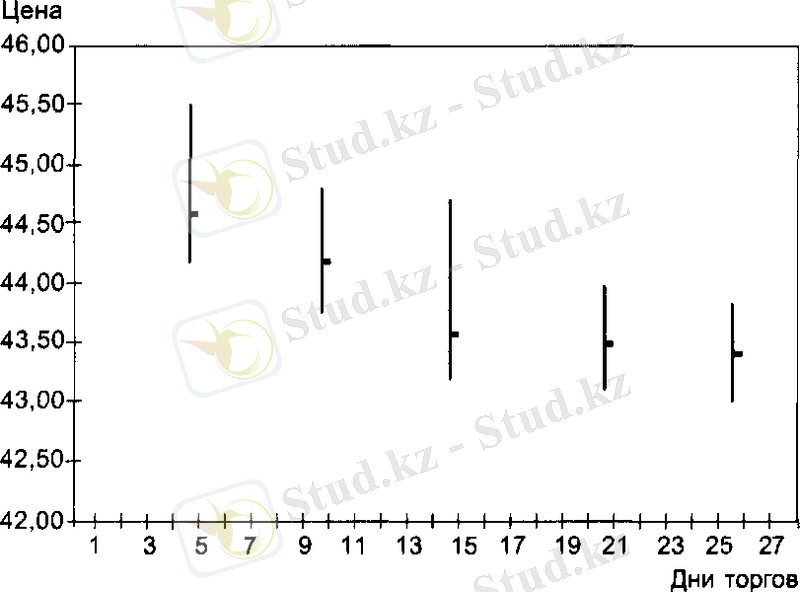 - диаграммаларда жазылған баға динамикасын зерттеу негізінде биржалық бағалы қағаздар нарығының дамуының негізгі тенденцияларын белгілеу;