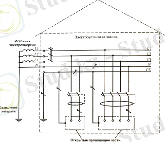 - Ток өткізгіш бөлігі-жұмыс кернеуінде жұмыс істеп тұрған электр қондырғысының өткізгіш бөлігі, оның ішінде нөлдік жұмыс өткізгіші (бірақ PEN-өткізгіш емес) .