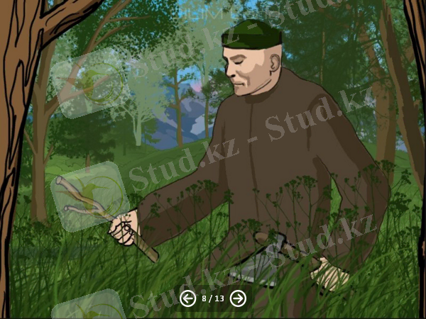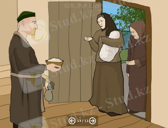 Суреттегі кейіпкерге әңгіме үзіндісі тұрғысынан назар аударады,