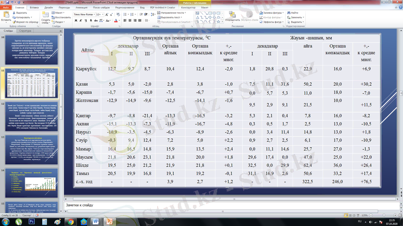 Красноармейка АМС мәліметтері бойынша 2018 жылдың қыркүйек айынан 2019 жылдың тамыз айына дейінгі агрометерологиялық көрсеткіштер