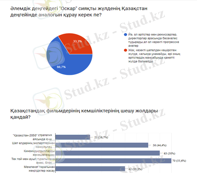66, 7% сұхбат алынған адамдар әлемге әйгілі және де көп әртістер үшін мансабында ең маңызды жүлдеге ұмтылыс тудыратын “Оскарды” Қазақстанда аналогын қажет екендігімен келіссе, 33, 3% шетелден кезекті көшірілген жүлде деп ұнатпайды.