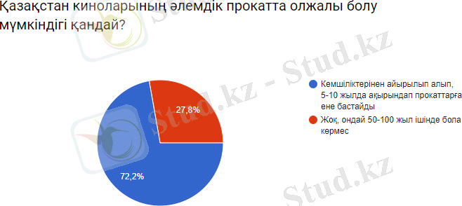 Қазақстанның кемшіліктер уақыт оздырмай түзесе, сауалнамаға қатысушылардың 72, 2% 5-10 жылдың ішінде шетелдік прокаттарға ене бастауының мүмкіндіктері бар деп ойлайды, ал 27, 8% ондай 50-100 жылда да бола көрмес дейді.