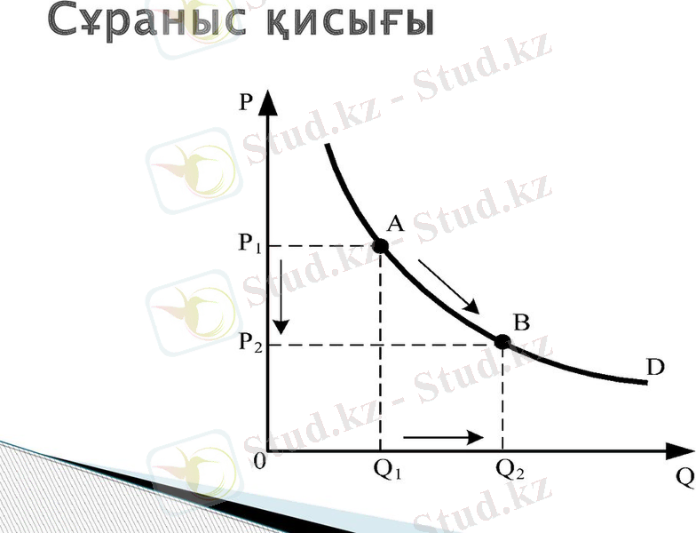 Егер сұранысты координаттар осіне түсіріп, бейнелеуге де болады. Бұл қисықты D әріпімен белгілеп, оны сұраныс қисығы деп атаймыз.