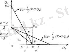Курно тепе-теңдігі:Q*A=Q*B=K-C/3.