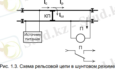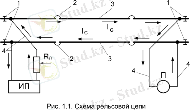 Рельс тізбегі - электр тізбегі (1. 1 сурет), онда қуат көзі (IP), жол қабылдағышы (P) және рельс желісі бар. Рельстік жол дегеніміз - бөлек тұрған екі рельстік жол