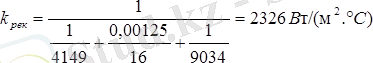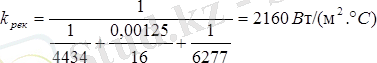 Қабырғаның қалыңдығы 1, 25 мм болатын жылу кедергісін ескере отырып жылу беру коэффициенті:
