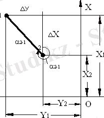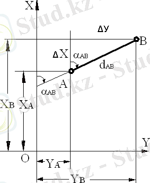 Бастапқы А нүктесінің ( Х А , У А ) координаталары белгілі де, шарт бойынша В -нүктесінен (Х А , У А ) координаталарын ( Х в , У в ) анықтау керек. 1-сурет бойынша: