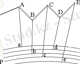 тiктеуiш сызығы арқылы P деңгейлi бетке проекцияланады. A, B, C, D нүктелерiнен түсiрген тiктеуiш сызықтарының деңгей бетiмен қиылысқан жерi осы нүктелердiң a, b, c, d проекциясын бередi. Сонда физикалық жердiң бетiн зерттеу келесi мәселерге бөлiнедi:
