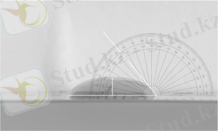Сурет 5. Көлбеу орналасқан қатты бетке тұрғызылған су тамшысы мен жанасу бұрыштары