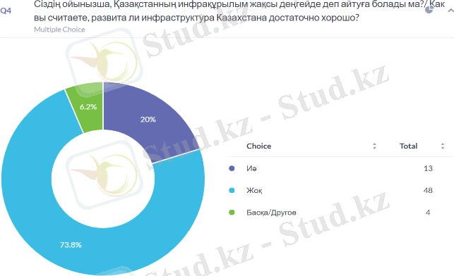 - Сіздің ойынызша, Қазақстанның инфрақұрылым жақсы деңгейде деп айтуға болады ма?