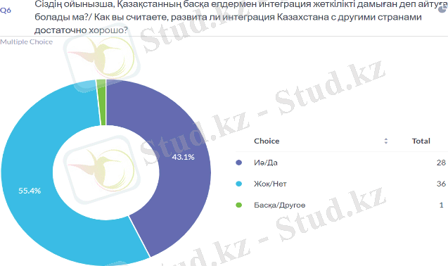 - Сіздің ойынызша, Қазақстанның басқа елдермен интеграция жеткілікті дамыған деп айтуға болады ма?