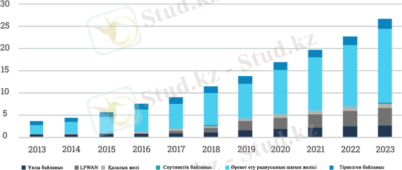 Machine Research мәліметтеріне сәйкес әлемде желіге қосылған құрылғылардың саны 2016 жылғы 7 миллиардтан 2023 жылға қарай 25 миллиардқа дейін артады [2] .
