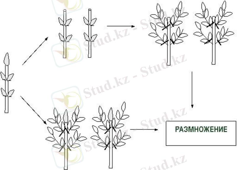 Сурет 3. Аксиларлы меристемаларды белсендіру арқылы өсімдіктердің көбею схемасы: