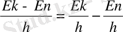 Бордың екінші постулатына сәйкес, атом үлкен энергиялы Е к стационар күйден аэ энертиялы Е n стационар күйге өткенде жарық iшығарылады. Шығарылған фотонның энергиясы атомның стационар екi күйдегi энергияларының айырмасына тең: