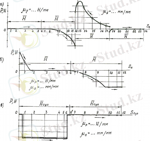 Сыртқы күштің графигін салу үшін біз абсцисса осі бойымен төрт сегментті бірінен соң бірін кейінге ысыратын, координаталар осінің жүйесін таңдаймыз, бұл абсцисса осі бойымен μS шкаласы бойынша нөлдік экстремалды позициядан басталады (2. 2, а-сурет) . Сегменттердің әрқайсысының мөлшері H= H/μS тең.