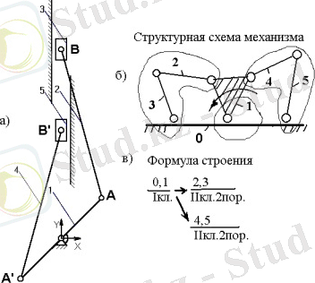а) механизмнің кинематикалық сызбасы