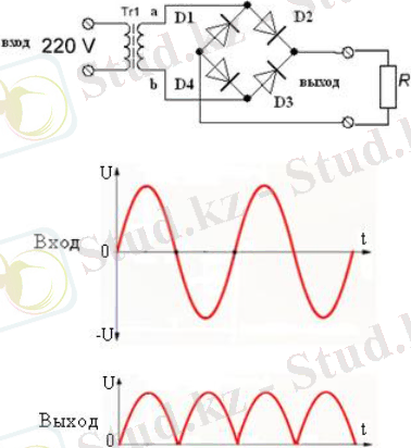 Түзеткіштің жұмысы уақытша диаграммаларды қолдану арқылы қарастырылады.
