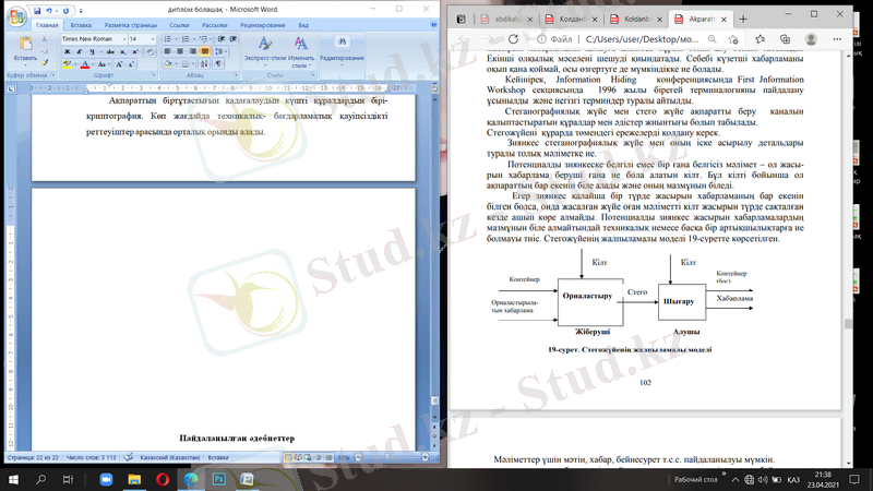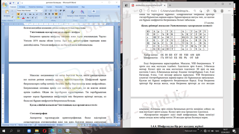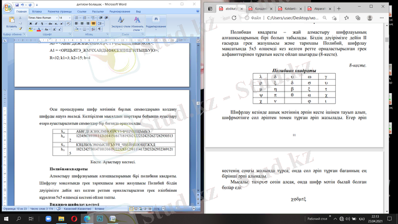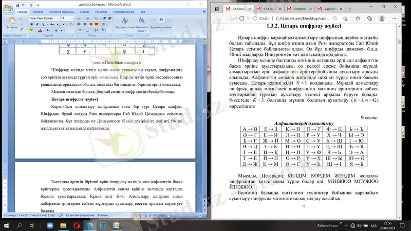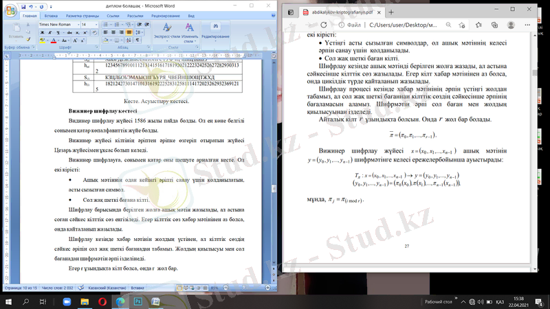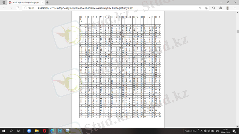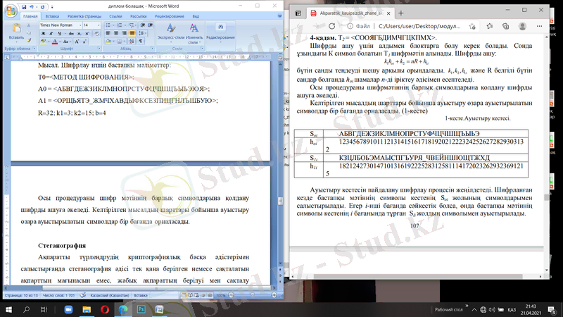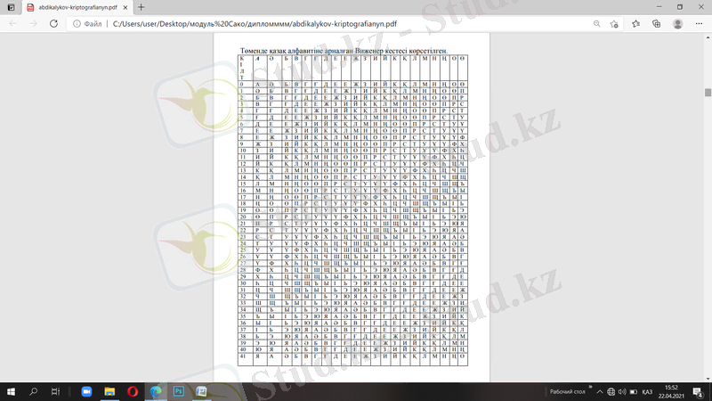 Диплом жұмысының жалпы сипаты: Ақпараттарды бөгде адамдар оқи алмайтындай етіп өзгертіп, қорғау мәселесі ертеден бері адамзатты ойландырып келе жатқан мәселе.