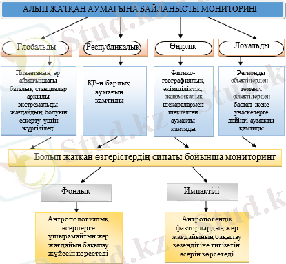 - Алып жатқан аумағына байланысты мониторинг жүргізу;
