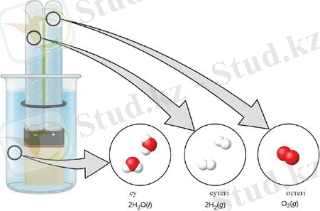 4 . Жер бетіндегі кең тараған химиялық қосылыс - су. Суды сутегінің негізгі шикізат көзі ретінде қарастыруға болады. Бірақ ол үшін суды суретте көрсетілгендей электр тоғының көмегімен ажыратуға болады. Осы кезде 572 кДж / моль энергия сіңіріледі.