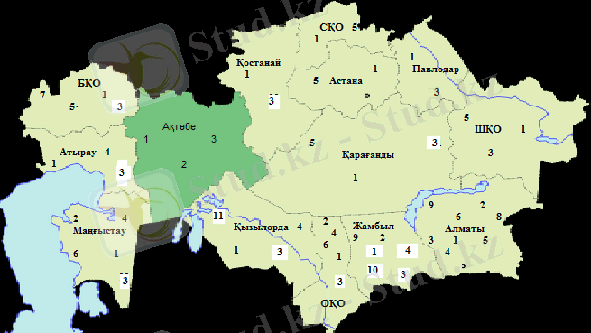 - Жaтaғaн укeкіpeнің аймақта таралуы . . .