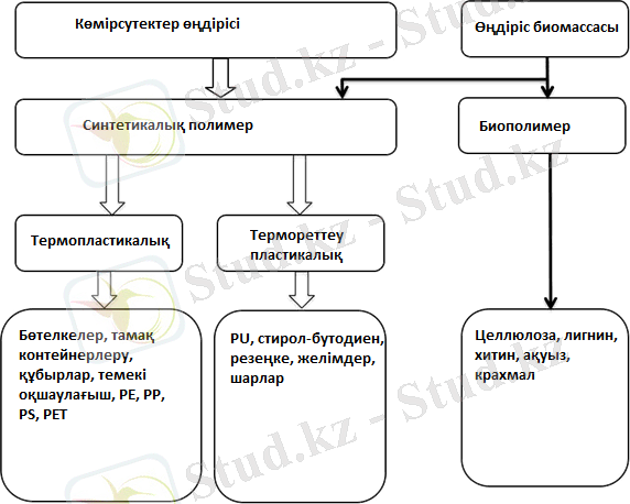 1. 1-сурет Ең көп таралған синтетикалық (пластмасса) және табиғи полимерлердің өндірісі, соның ішінде кейбір типтік қосымшалар.