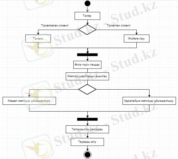 1. 5. 2Ауыл шаруашылық биржасынаарналған қосымшаныңқызмет диаграммасы. UML тілінде операцияларды орындау үдерістерін модельдеуде қызмет диаграммасы пайдаланады. Ауылшаруашылық биржасынаарналған қосымшаныңқызмет диаграммасысурет 5-те көрсетілген.