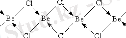 Хлорид пен басқа Галогенидтерді ве координациялық саны 4-ке тең болатын көп ядролы күрделі қосылыстар ретінде қарастыруға болады. BeCl2 кристалдарында cl көпірлік атомдары бар шексіз тізбектер бар: