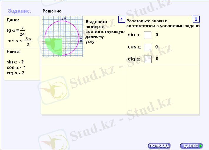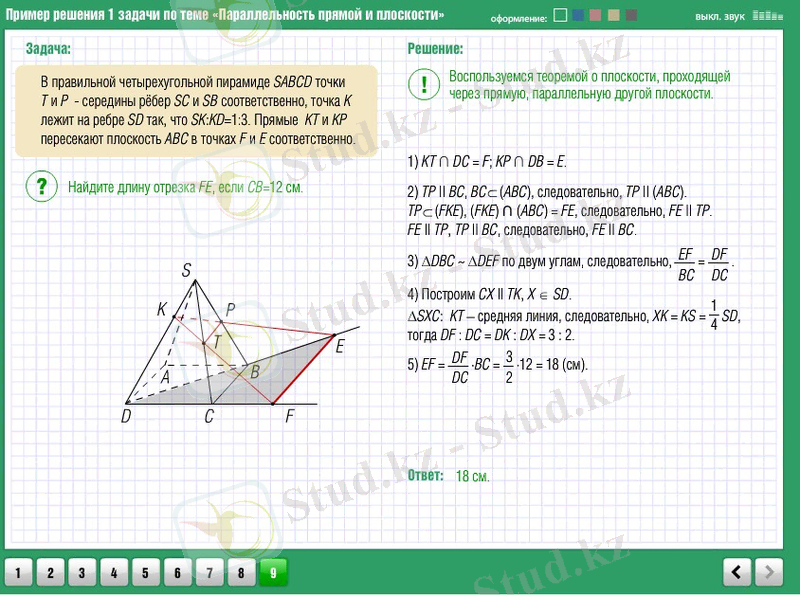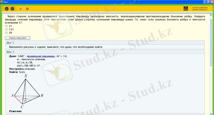 Бұл ESS тек білімді игеру жүйесін ғана емес, сонымен бірге шешімнің жалпы схемасын және шешімнің нақты мысалын бейнелейтін анимациялық клиптер түрінде құрастыруға арналған негізгі міндеттерді де қамтиды; есептеу немесе дәлелдеу үшін анықтамалық тапсырмалар, оқушылардың ақыл-ой әрекетін басшылыққа алатын қадамдық нұсқаулары бар тапсырмалар түрінде; есептер шығарудың мысалдары (анимациялық бейнелер есептер шығаруды иллюстрациялайды) ; білім беру міндеттері (шешуге арналған қадамдық нұсқаулықтан тұратын тапсырмалар) ; көп деңгейлі тапсырмаларды тексеру.