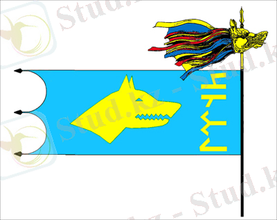 Түркі халықтарының дала жыртқышы қасқыр (бөрі) бейнесі қазақтың жауға шапқанда жауынгерлік рухын оятатын байраққа теңелген.