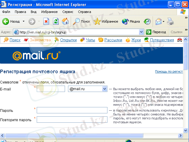9-сурет. Mail. ru пошталық серверінде тіркелу терезесі.