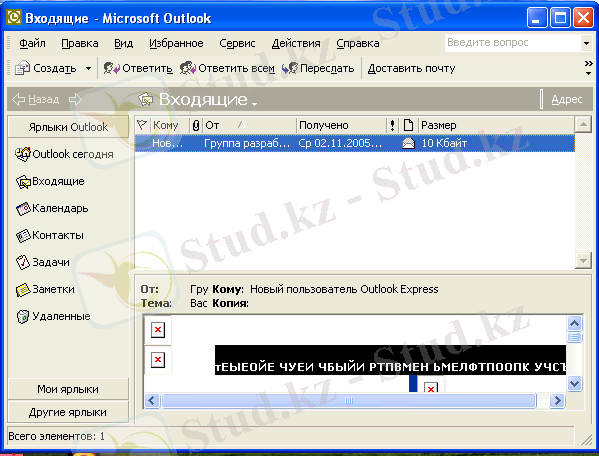 Электрондық поштамен жұмыс істеуге мүмкіндік беретін MS Outlook программасының қызметтерін қарастырайық: