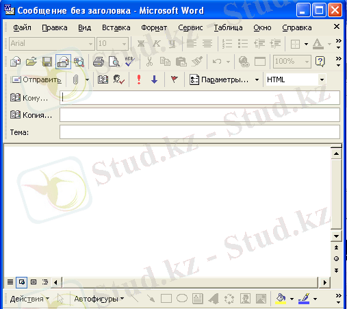 Жаңадан хабарлама құру үшін Сообщение→Создать сообщение командасын орындаймыз немесе CTRL+N пернелер комбинациясын басамыз (12-сурет) .