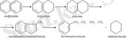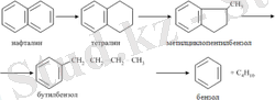 Бициклді ароматты көмірсутектердің гидрогенизациясы тетралин сияқты гидроароматты қосылыстардың түзілуі арқылы жүреді. Тетралиннің одан әрі конверсиясы екі жолмен жүреді: алкилбензолдың түзілуі және екінші сақинаның гидрогенизациясы нәтижесінде декалиннің түзілуі арқылы. Бірінші жағдайда соңғы конверсия өнімі - бензол, екіншісінде циклогексан. Нафталинді түрлендіру схемасы: