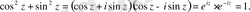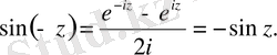 3˚. Комплекс айнымалылы синус пен косинус үшін нақты айнымалылы тригонометриялық функциялардың негізгі тепе-теңдіктері де орындалады: