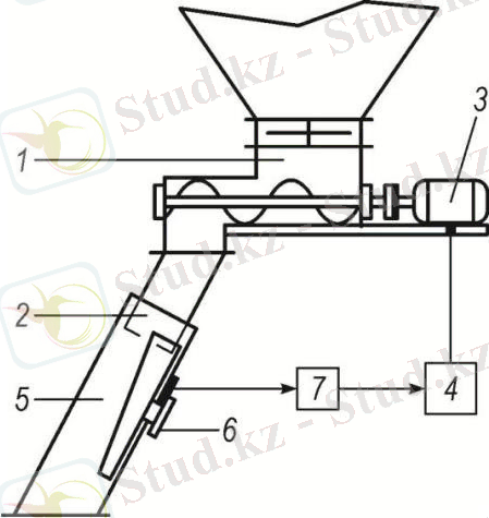 - - шығын бункері; 2 - шығын датчигі; 3 - қозғалтқыш; 4 - жиілік өзгерткіш; 5 - датчик тензометриалық датчик; 7 - микроконтроллерге сигналдың келуі.