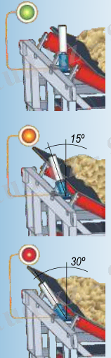 - датчик корпусы 30º- тен одан жоғары мәнге дейін ығысқан кезде лента аса қауіпті жағдайда жұмыс жасайды, оның екінші жұп контактысы ауыстырылып қосылады.